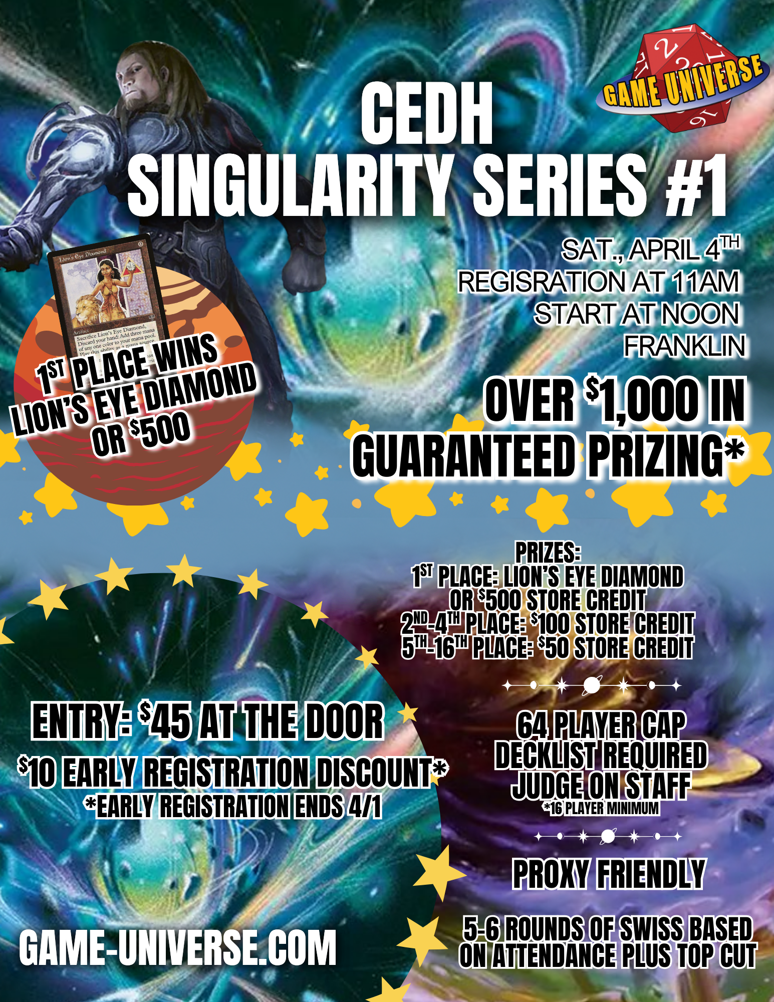 Get ready for cEDH! Singularity Series is coming to Franklin on Saturday, April 4th!
