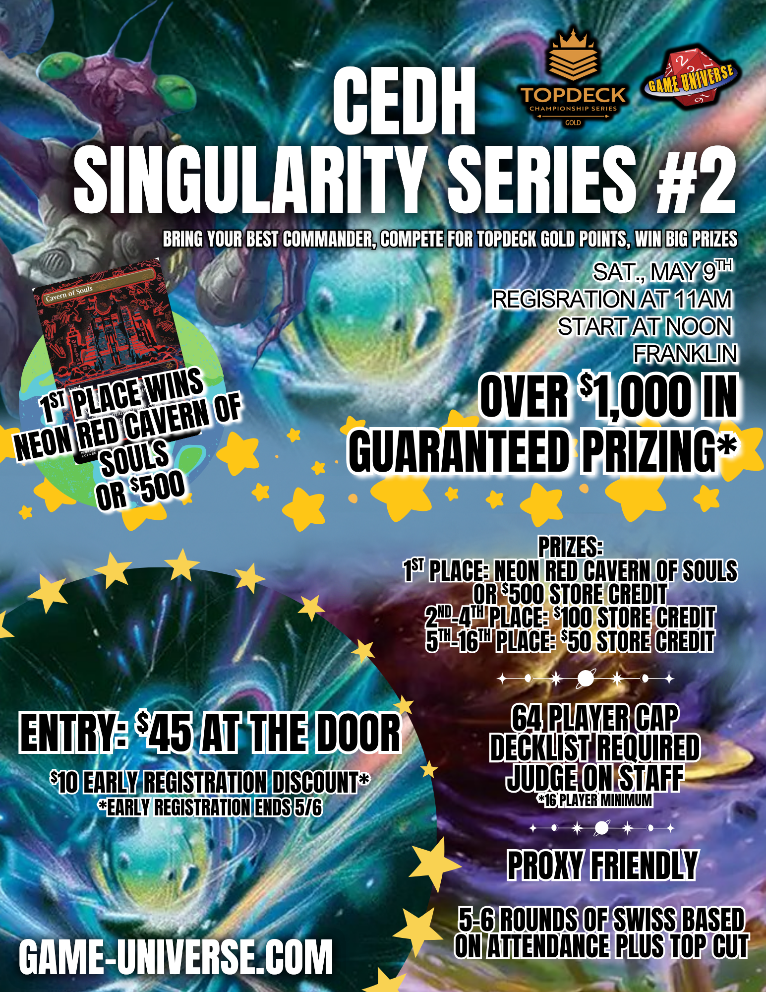 Get ready for cEDH! Singularity Series is coming to Franklin on Saturday, May 9th!