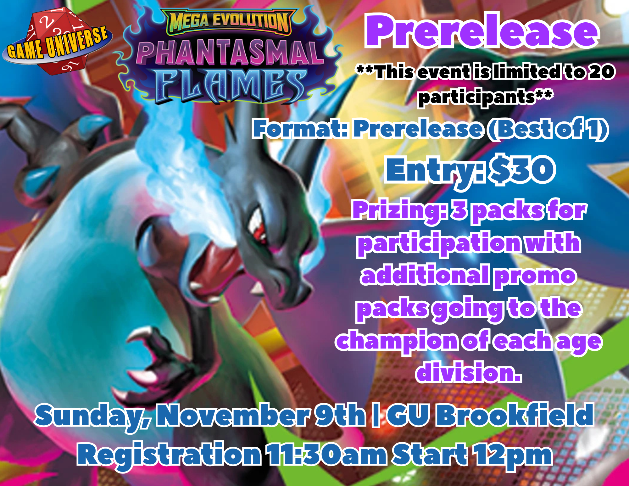 The newest expansion of Pokemon TCG: Mega Evolution Phantasmal Flames comes to Game Universe on Friday, November 14th!