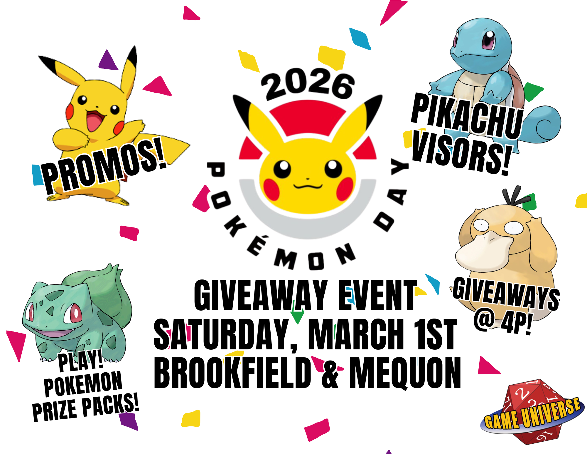Attention Trainers! Stop by Game Universe in Brookfield and Mequon Saturday, March 1st to get FREE Pokémon!