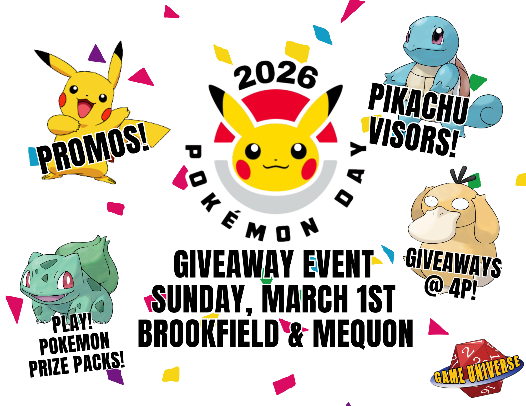 Attention Trainers! Stop by Game Universe in Brookfield and Mequon Sunday, March 1st to get FREE Pokémon!