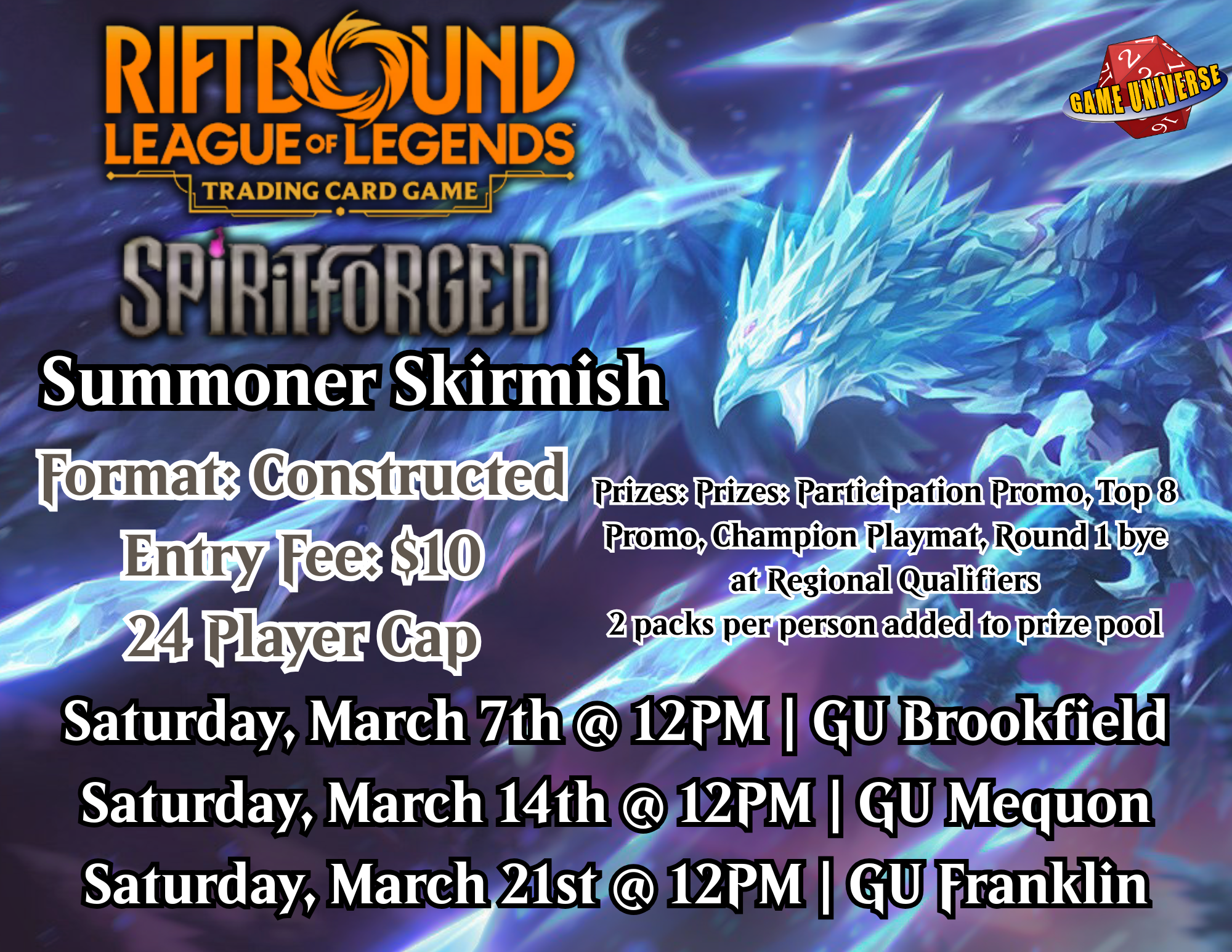 Competing in Summoner Skirmishes can grant you a round one bye at Regional Qualifiers, store credit, and exclusive promos. This is your chance to conquer the battlefield with all of the knowledge gained through Nexus Nights.