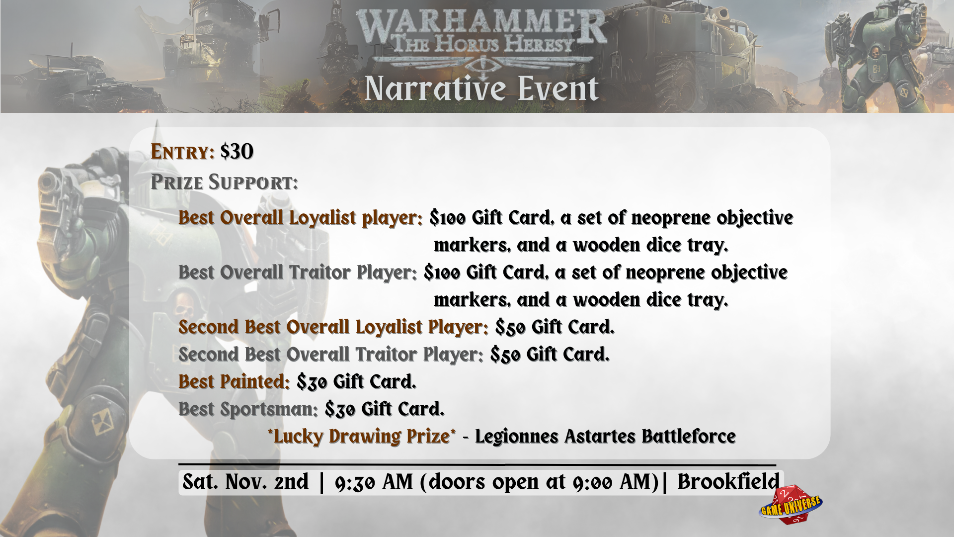 Warhammer, In-Store Event Guest User 1/3/25 Warhammer, In-Store Event Guest User 1/3/25 The Horus Heresy Narrative Event Read More
