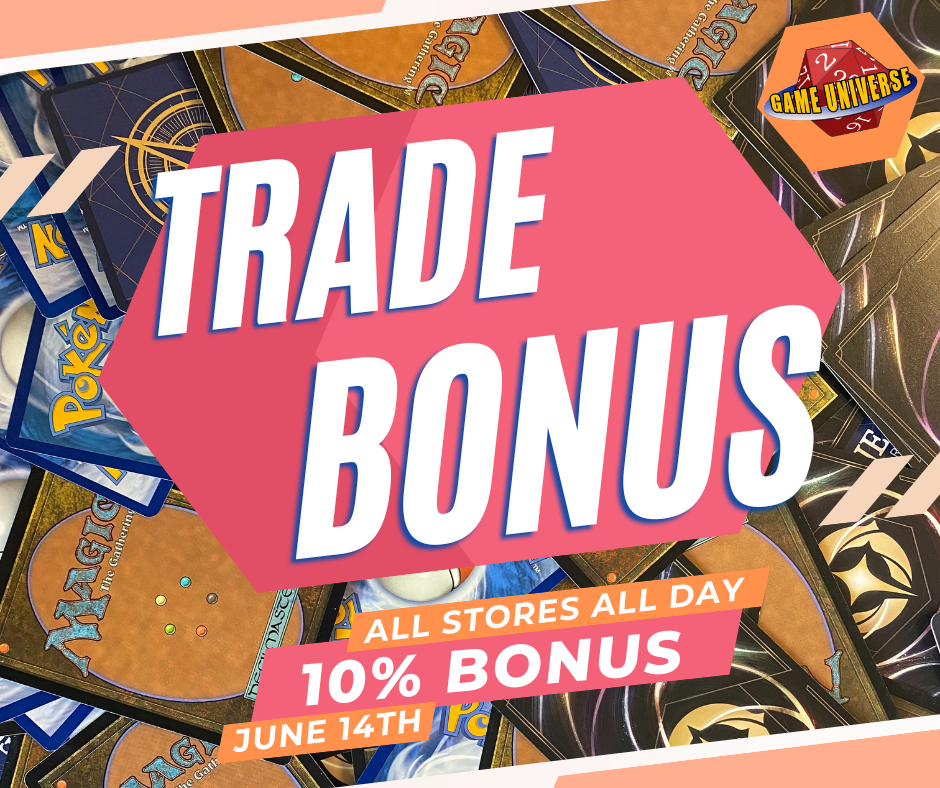 Get a 10% BONUS on all Magic: The Gathering, Pokemon, Lorcana, Star Wars Unlimited and One Piece singles trades!